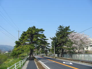 前回と同じく名古屋駅まで夜行バスで行きました。、朝6時30分につきJRで岐阜駅に。そこから近鉄竹鼻線で前回の終了地である須賀駅を7時30分スタ−トしました。天気にも恵まれ快晴の日です。 「間の宿跡」は、起宿と墨俣宿のほぼ中間に位置する南宿村にあり諸侯が休息された場所です。 しばらく歩くと美濃路は、「菜の花畑」と桜がとっても綺麗に咲いている堤防に突き当たります。この「堤防の道」は「県道165号線」(小熊正木線)で車も余り通行がなく菜の花や桜を見ながら歩いているとついつい「なのは--なばたけ--の」と口づさんでいました。 |